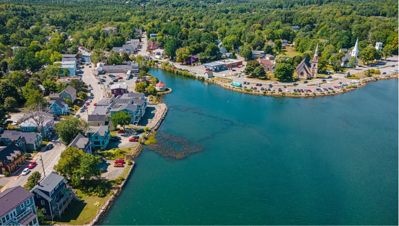 Protected harbour community known for artisan culture and historic village charm. Mix of village properties, waterfront homes, and nearby rural acreages attract buyers seeking small-town character with cultural activities.